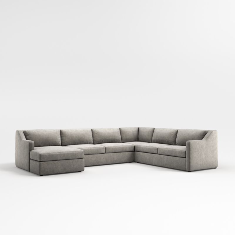 Our Notch collection creates a casually comfortable sectional with clean lines and an open attitude. Comprising a left-arm chaise, corner, armless sofa and right-arm sofa, the U-shaped sectional provides a casually comfortable sit that's slightly upright with generous seat and back cushions. A great choice for active households, Notch is tailored in a family-friendly fabric with lots of touchable texture.