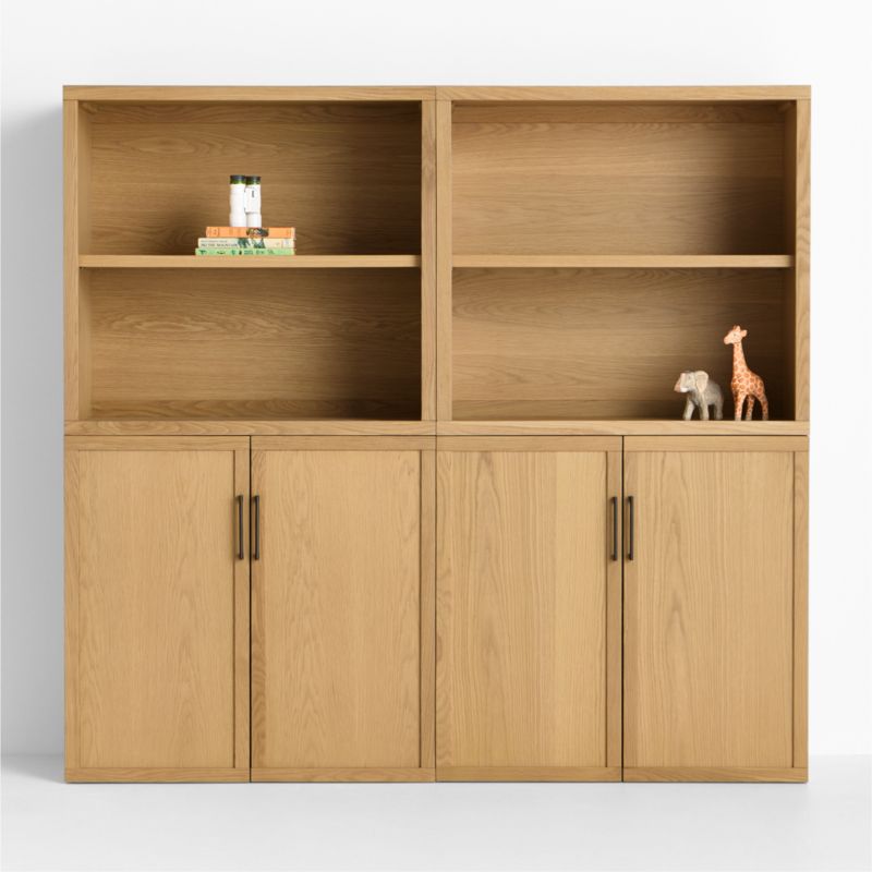 Oliver Modular Natural Oak Wood Kids Bookcase with Doors