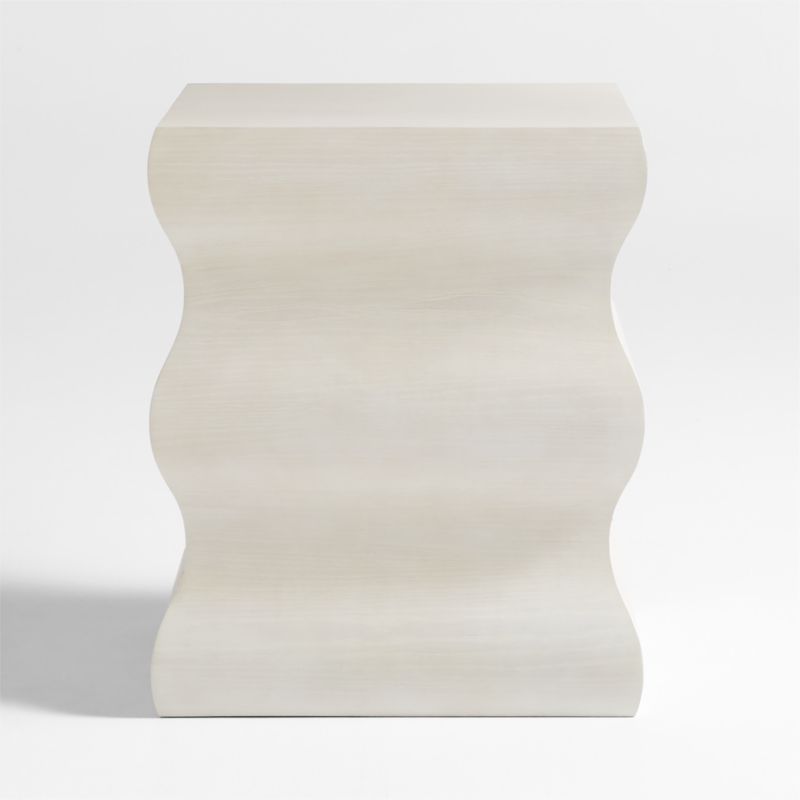 Jazz up your living room with the sculptural curves of our Onda side table. Named after the Spanish word for wave, the ash veneer table is crafted with a sinuous silhouette. A pearl white finish creates a silky segue between the highlights and shadows that give this piece its artful allure.