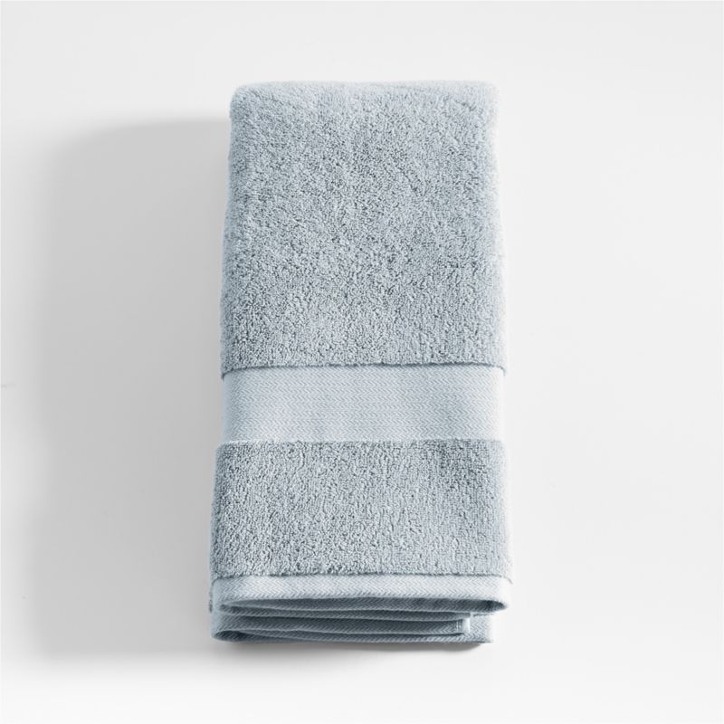 Luxurious Turkish organic cotton yarn weaves extremely soft, plush and dense towels. Made of double-ply cotton threads to ensure strength and durability, our Turkish hand towel in misty blue is woven with a looped rather than tight construction to dry quickly. An intricate herringbone dobby weave border on either end adds a bit of elegant detail. Washing will only make this exceptional textile more absorbent and soft. For a sumptuously outfitted spa-like bathroom, pair with our other Turkish towels in the same serene hue.