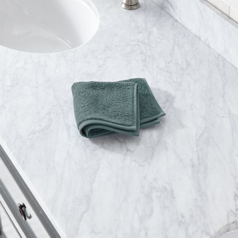Luxurious Turkish organic cotton yarn weaves extremely soft, plush and dense towels. Made of double-ply cotton threads to ensure strength and durability, our Turkish washcloth in ocean blue is woven with a looped rather than tight construction to dry quickly. An intricate herringbone dobby weave border on either end adds a bit of elegant detail. Washing will only make this exceptional textile more absorbent and soft. Coordinates with our other Turkish towels.