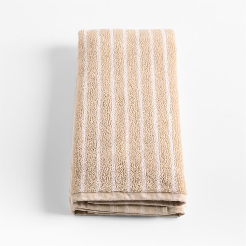 • View Organic Turkish Cotton Sand Beige and Crisp White Stripe Hand Towel - image 5 of 6