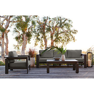 Entertain your guests with cozy and comfortable outdoor furniture sets and collections. For a modern look, opt for the Dune Outdoor Furniture Collection. From sleek silhouettes to contemporary stainless steel framing, Dune outdoor furniture sets make for a stylish and modern living room. To create a cohesive seating arrangement for your guests, consider pairing a blue patio sectional with a matching outdoor patio table and chairs. Or, create an edgy vibe in the backyard with dark-hued outdoor patio furniture. Situate a pair of grey patio chairs side by side on one half of the deck, while positioning a set of black outdoor dining chairs and loungers on the opposite end.