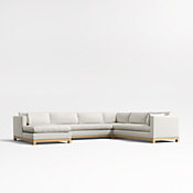 Long, low and made for lounging, our Pacific sectional complements contemporary living rooms with its easy, breezy style. Sustainably sourced wood with a light finish anchors the three-piece sectional—a corner and left-right-arm sofa—with square legs and a full rail. Along with pillowy back cushions and supportive bolsters, the bull-nosed seat ensures a comfortable stay with medium-density, not-too-deep cushions. You'll love the sectional sofa upholstered in Olef, a 100% recycled fabric with subtle textured slub and marled yarns.