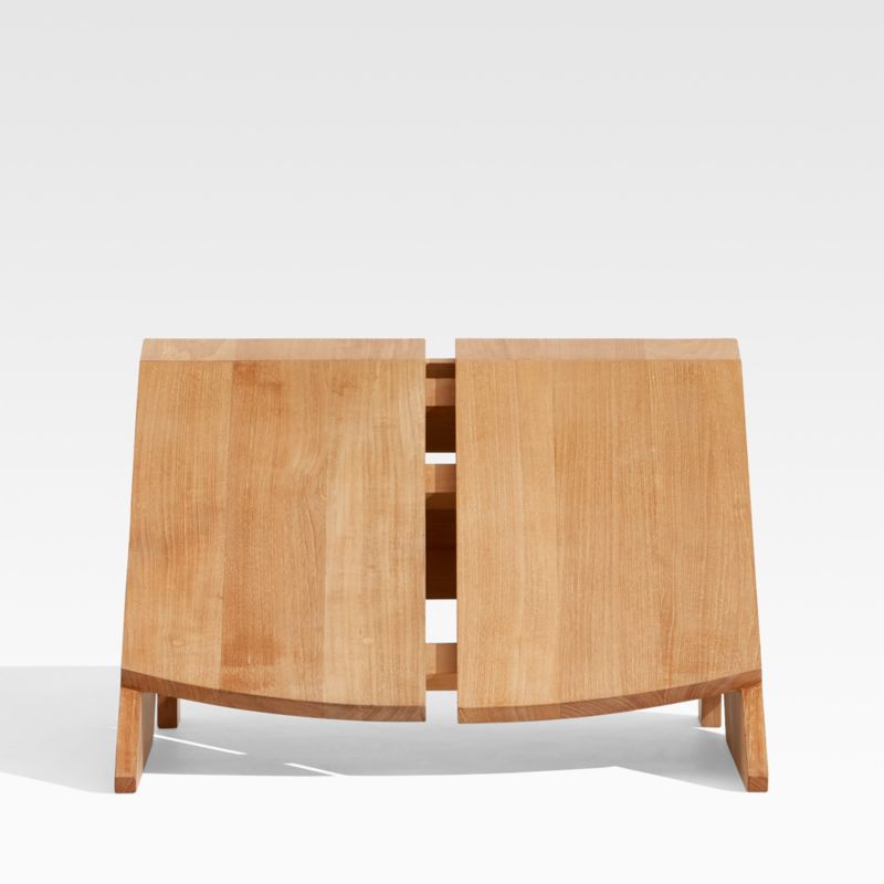 At ease with angles, Paso updates the classic Adirondack ottoman with modern lines and bold shapes. Slatted and sloped, the ottoman is made of beautiful teak. Left unfinished, teak will weather to a beautiful silvery grey. Pair with the Paso Adirondack chair for the ultimate outdoor lounge. A sculptural take on a summer staple, the Paso Adirondack ottoman is a Crate and Barrel exclusive.