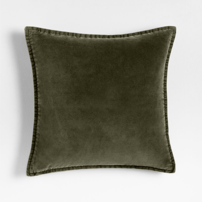 Relaxed Washed Organic Cotton Velvet 20"x20" Burnt Green Throw Pillow Cover