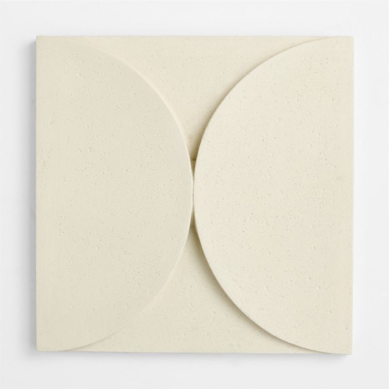 Molded from a mixture of volcanic ash, resin and fiberglass, this minimalist relief sculpture brings depth and movement to indoor and outdoor walls. The tile abuts two semicircles in a deceptively simple composition that produces an ever-changing show of light and shadow. Painted by hand in room-friendly ivory, the tile can be displayed singly or grouped in multiples to enliven your space with dynamic, dimensional pattern.