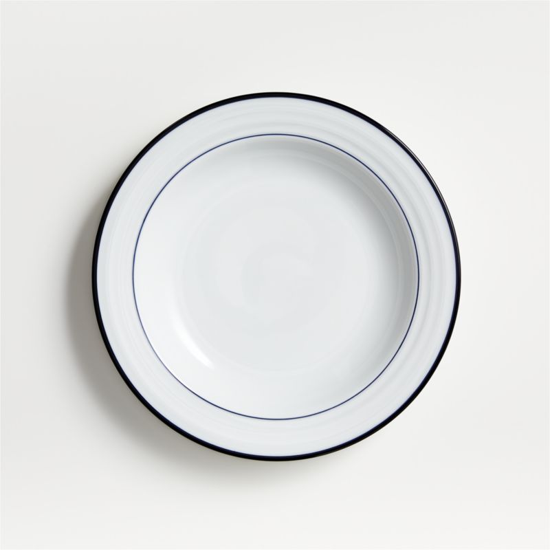 Your table will be dressed for success in this tailored cousin to our all-white Roulette dinnerware, a top-selling, customer-favorite for 23 years. Designed by Martin Hunt of Queensberry Hunt, this porcelain dinnerware collection features contemporary shapes accented with crisp navy bands and rims. Mix and match with our original white Roulette dinnerware.