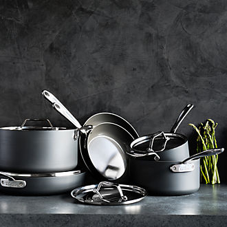 - All-Clad Non-Stick Cookware: If you prefer the ease of care and cleanup that nonstick cookware provides, AllClad cookware made of hard-anodized aluminum might be the way to go. From frying pans to stock pots, non-stick All-Clad cooking ware combines the brand's layered metal technology with a durable non-stick surface. Choose from the All-Clad HA1 cookware series, which features stainless steel induction plates on the bottom of each piece for compatibility with induction cooktops, and the more basic Essentials collection.
