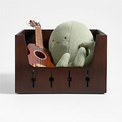 Smart storage meets elevated style. This stackable storage crate features a warm natural finish and geometric cutouts that conceal clutter while bringing character to any playroom or nursery. Stack multiples to build a storage setup that grows with them.