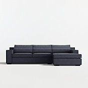 Designed to be tailored and inviting, our Soho sectional balances clean lines with softness you can really sink into. Allover flange detailing outlines the sofa's modern silhouette, highlighting the wide track arms, box cushions and the subtle triangular shape of the back pillows. Lumbar cushions customize your comfort, creating a double layer of back support or removing for a deeper sit.