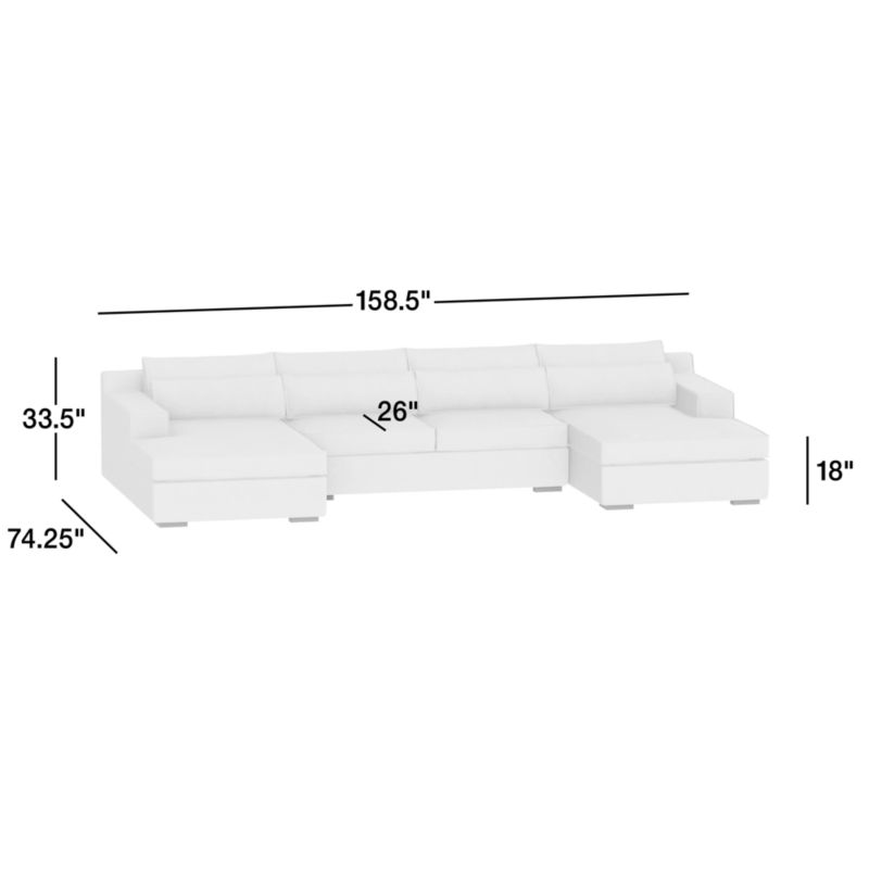 Soho 3-Piece U-Shaped Sectional Sofa with Double Chaise Lounge33.5"Hheight158.5"Wwidth74.25"DdepthMeasurements are in inches.85.09Hheight402.59Wwidth188.6DdepthcmMeasurements are in centimeters.