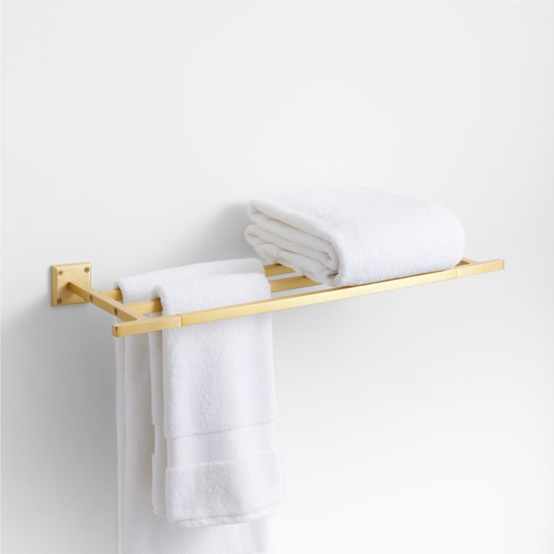 Sometimes it's the small things that pull a room together. That's why we've designed a hardware collection with modern silhouettes, clean lines and a touch of tradition to give your bathroom that perfect finishing touch. Rounded corners and smoothed edges soften the minimalist design of the towel rack made of brushed brass. The three-rod design lets you hang multiple towels, while the rack's mix of square and rectangular shapes gives it a geo-forward look that's bold and contemporary. The towel rack is ready to mount on the wall with included hardware.
