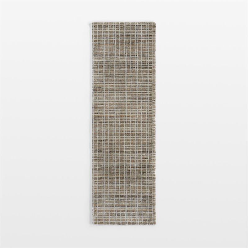 Perfectly imperfect lines intersect in a dynamic grid on our exclusive Talence runner. The slender bands of white overlay countless shades of tan and grey to form a deliberately uneven and dynamic checkered pattern. Space-dyed to create subtle color variations and an organic look, the performance fiber is cut unevenly for visual depth and irresistible texture. The contemporary sand beige runner stands up beautifully to traffic in the kitchen, entryway or hall.