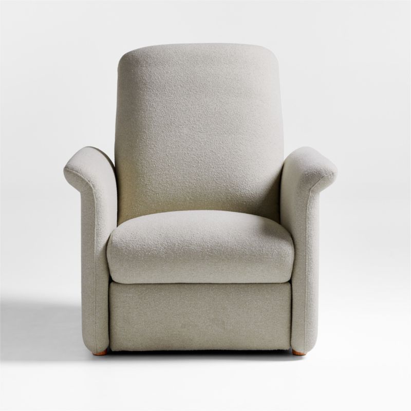 Covered in a neutral fabric with the pleasing look and feel of textured wool, the chair sports cushy pillow seating in a streamlined frame. Slim side panels take a graceful turn to form armrests, nestling plush seat and back cushions. And when it's time to chill, the chair tilts back and elevates the feet to a restful recline.