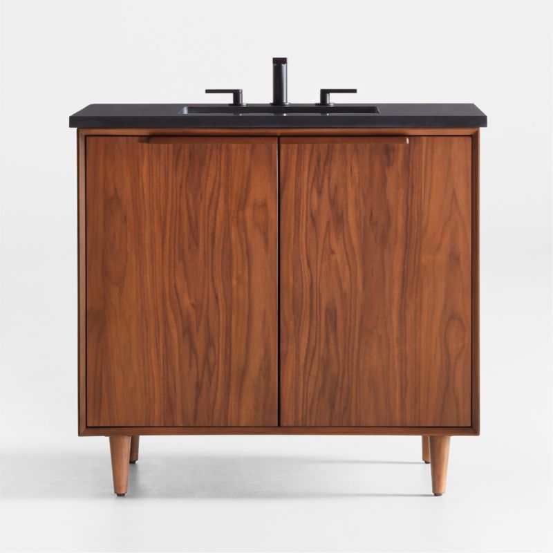 Tate 36" Black Granite Top Single Sink Vanity with Walnut Wood Doors
