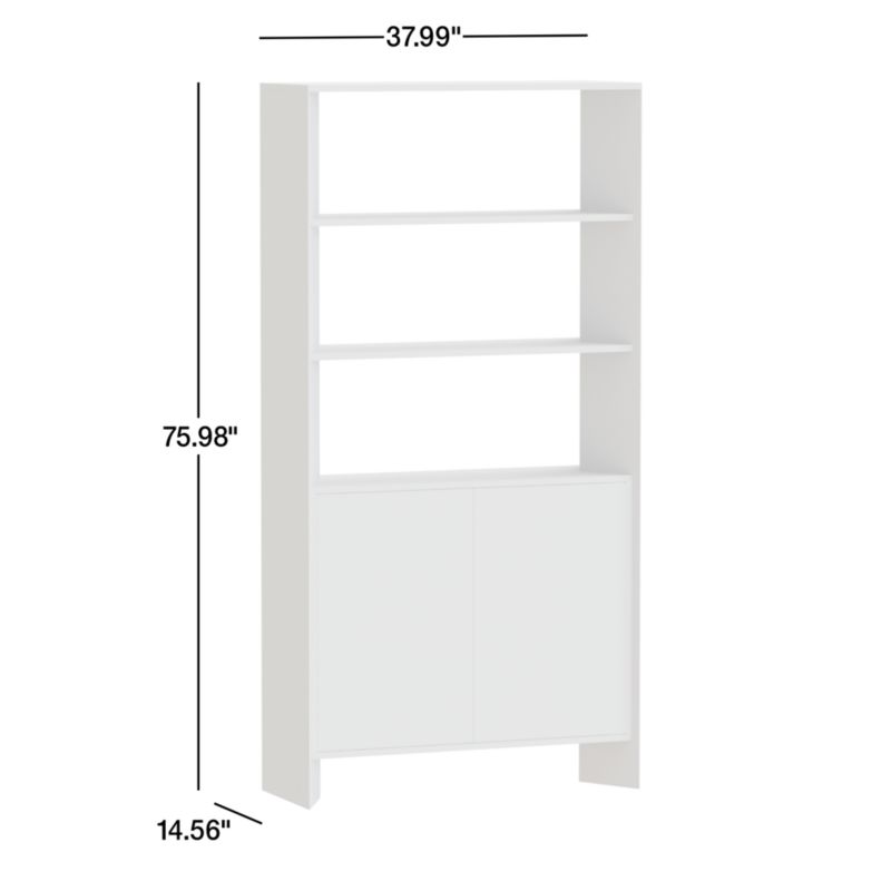 Terrazza transforms household storage with unexpected angles and intersecting shapes. Triangular legs rise straight to the bookcase top, lending a sense of movement to the media console's clean, rectilinear profile. Flat-front, push-to-open doors provide easy access to interior storage. Made of solid oak and oak veneer, the bookcase cabinet is gently wire brushed and given a light ivory ceruse finish to bring out the wood grain.