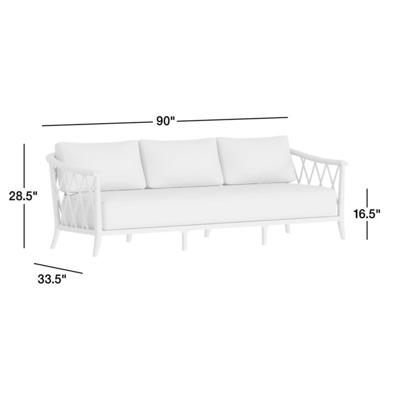 Recalling vintage European garden furniture, the Harper sofa refines outdoor lounging with high style and extra-deep, sink-in cushions. The sustainable teak frame stands on gracefully flared legs as it shapes a curved back detailed with a breezy, trellis-inspired lattice pattern. The thick bench cushion provides a slightly firm, supportive seat with soft, fiber-filled back box cushions for added comfort. Bordered with contrast welting in taupe, the well-tailored cushions feature natural-toned performance fabric woven with a slight slub for a touch of texture.