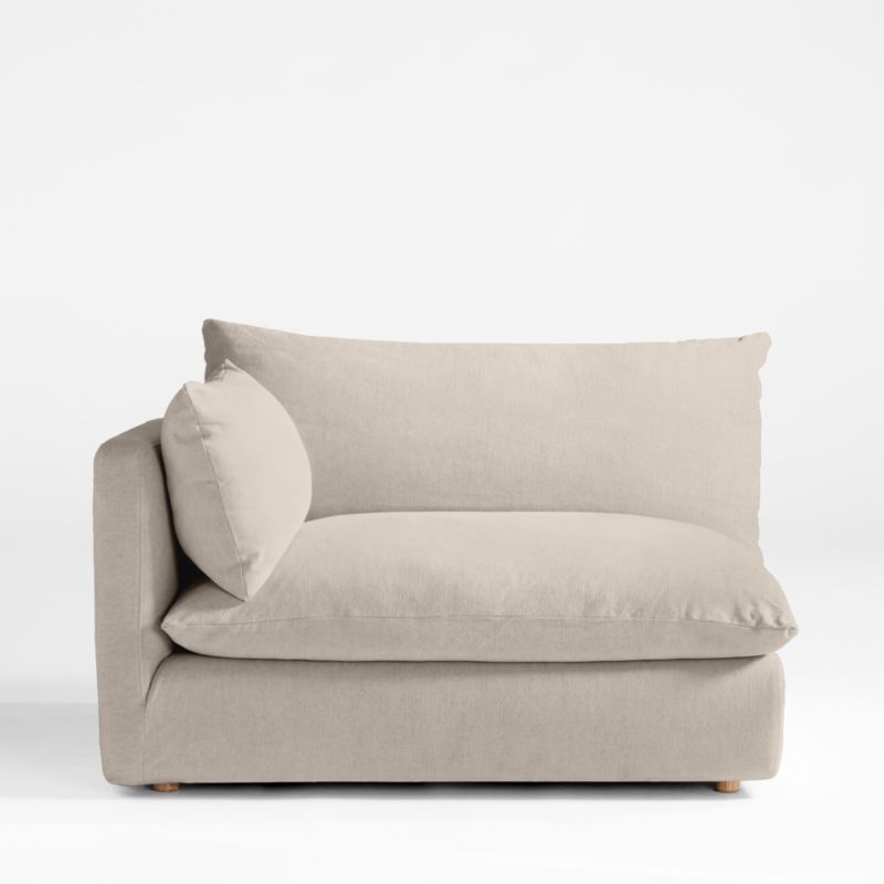 It's time to Unwind with our coastal-cool slipcovered sectional collection. Named after our favorite thing to do, this modern beauty delivers with sumptuous sink-in cushions and relaxing proportions. Designed to coordinate with other Unwind sectional pieces, the left-arm slipcovered chair features a slim arm and low deck that make room for pillowy back and seat cushions for an exceptionally deep and comfortable sit. We love the natural feel and slubby texture of the slipcovers, made of a breezy blend of cotton, linen and viscose yarns.
