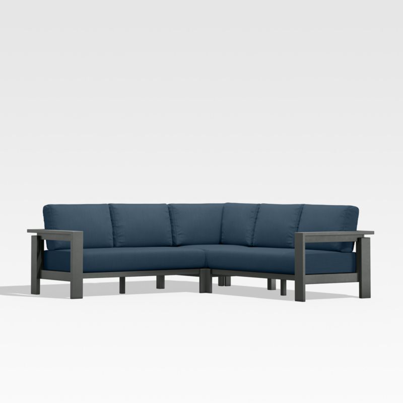 Walker Metal 3-Piece Outdoor Sectional Sofa with Cast Harbor Blue Sunbrella ® Cushions
