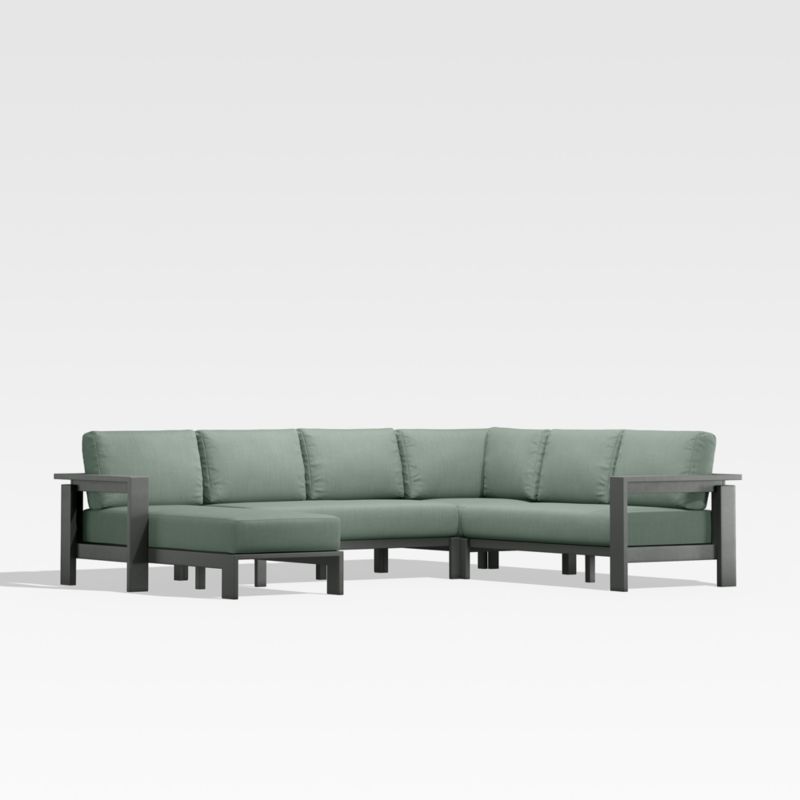 Walker Metal 4-Piece Left-Arm Chaise Outdoor Sectional Sofa with Canvas Spa Blue Sunbrella ® Cushions