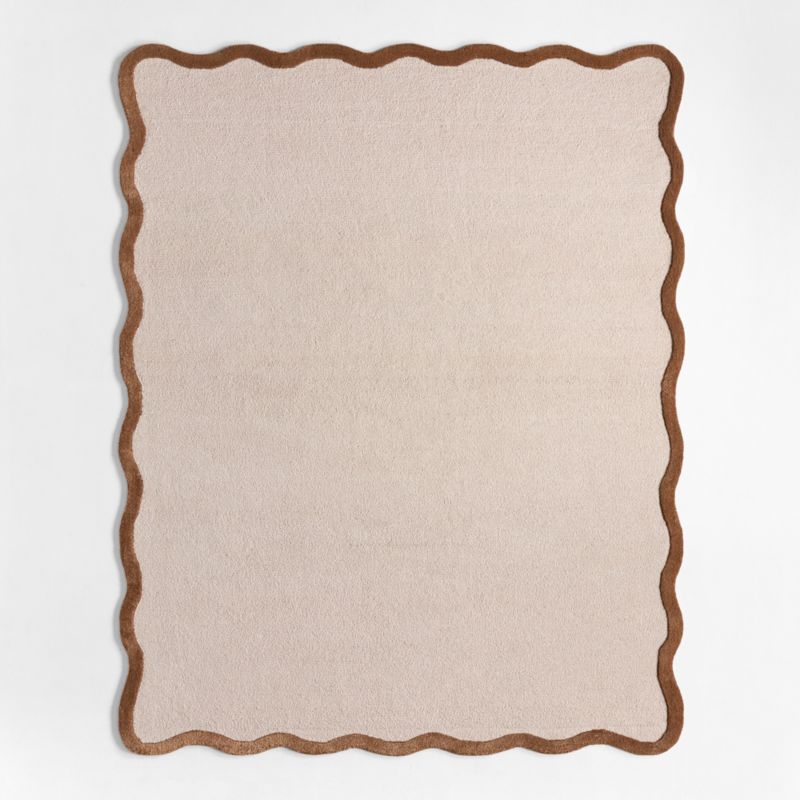 With its delicate, wavy scallop border, this performance rug adds just the right touch of playfulness to your kid's space. The contrast edge detail brings a sense of movement, while the soft, tonal palette keeps the look feeling polished and easy to style. Hand-tufted with care, it's extra-cushiony underfoot and durable enough for high-traffic zones like playrooms and nurseries. Sophisticated, structured and fun—it's made for rooms (and kids) that do it all.