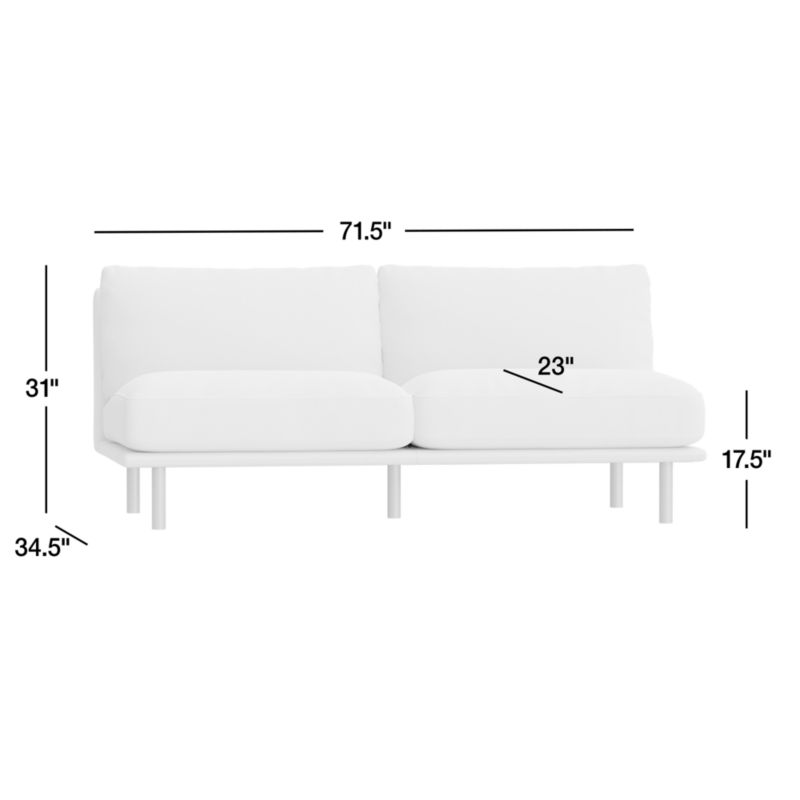 Wells Armless Sofa Sectional Piece28.5"Hheight71.5"Wwidth34.5"DdepthMeasurements are in inches.72.39Hheight181.61Wwidth87.63DdepthcmMeasurements are in centimeters.