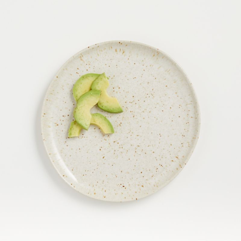 Speckled with flecks of brown reactive glaze, our sand-colored Wilder salad plate extends a warm welcome to a carefully composed salad course as well as s noontime sandwich. Earthy yet stylish, the artisanal stoneware plate is made for us exclusively in Portugal. Showcasing its own unique constellation of speckles, the plate has a modern organic shape that perfectly complements everyday meals or festive holiday gatherings.