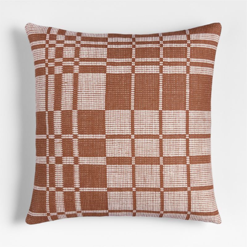 • View Wool and Linen Blend Plaid 23"x23" Maple Brown Throw Pillow Cover - image 1 of 5
