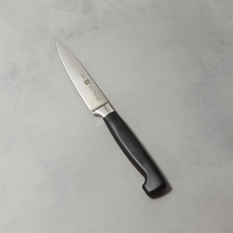 Forty years ago, Zwilling J. A. Henckels revolutionized the standards for top-quality knives with the introduction of the seamless synthetic handle. Small, light and versatile, the paring knife has a slim blade and center tip to peel, cut, clean and create garnishes of fruit and vegetables. Forged from a single piece of steel the knife is hand sharpened and polished, and perfectly sized and weighted for all kinds of cutting tasks.